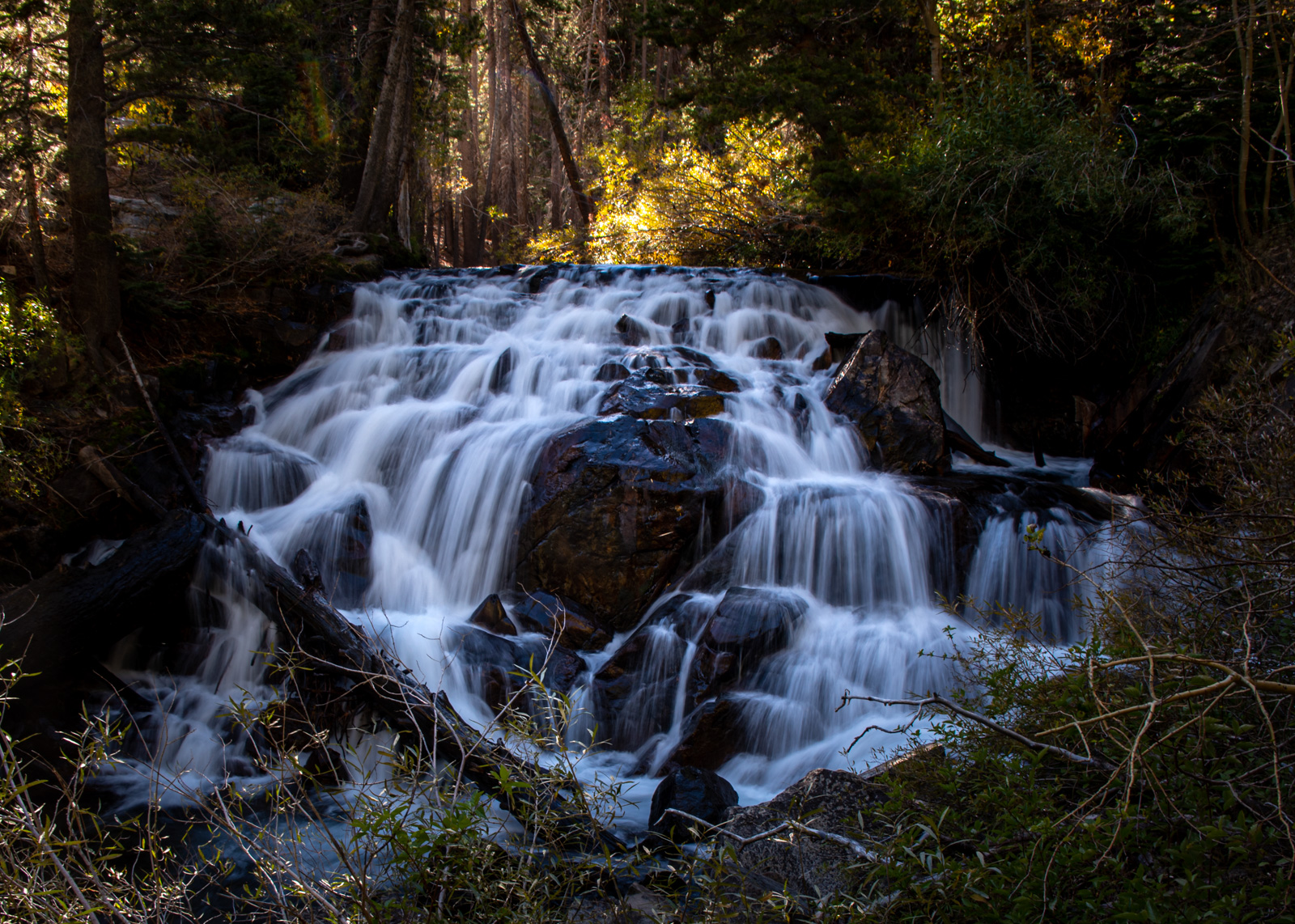 비숍 가을 햇볕이 내려쬐는 자그마한 폭포