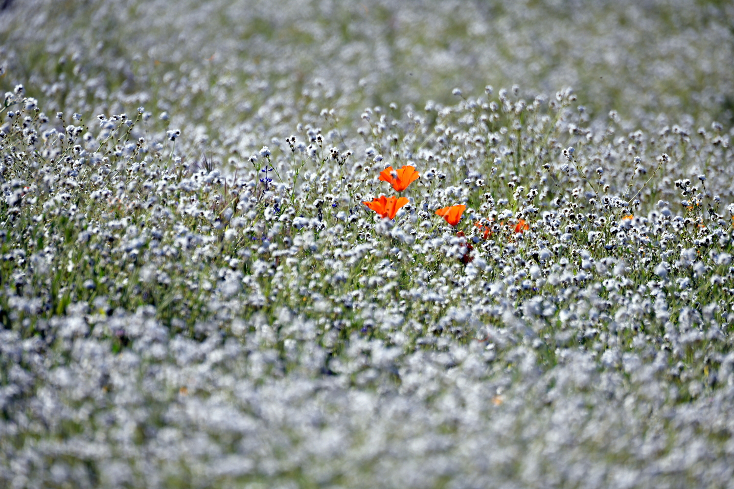 하얀꽃속에 빨간 파피꽃 세송이