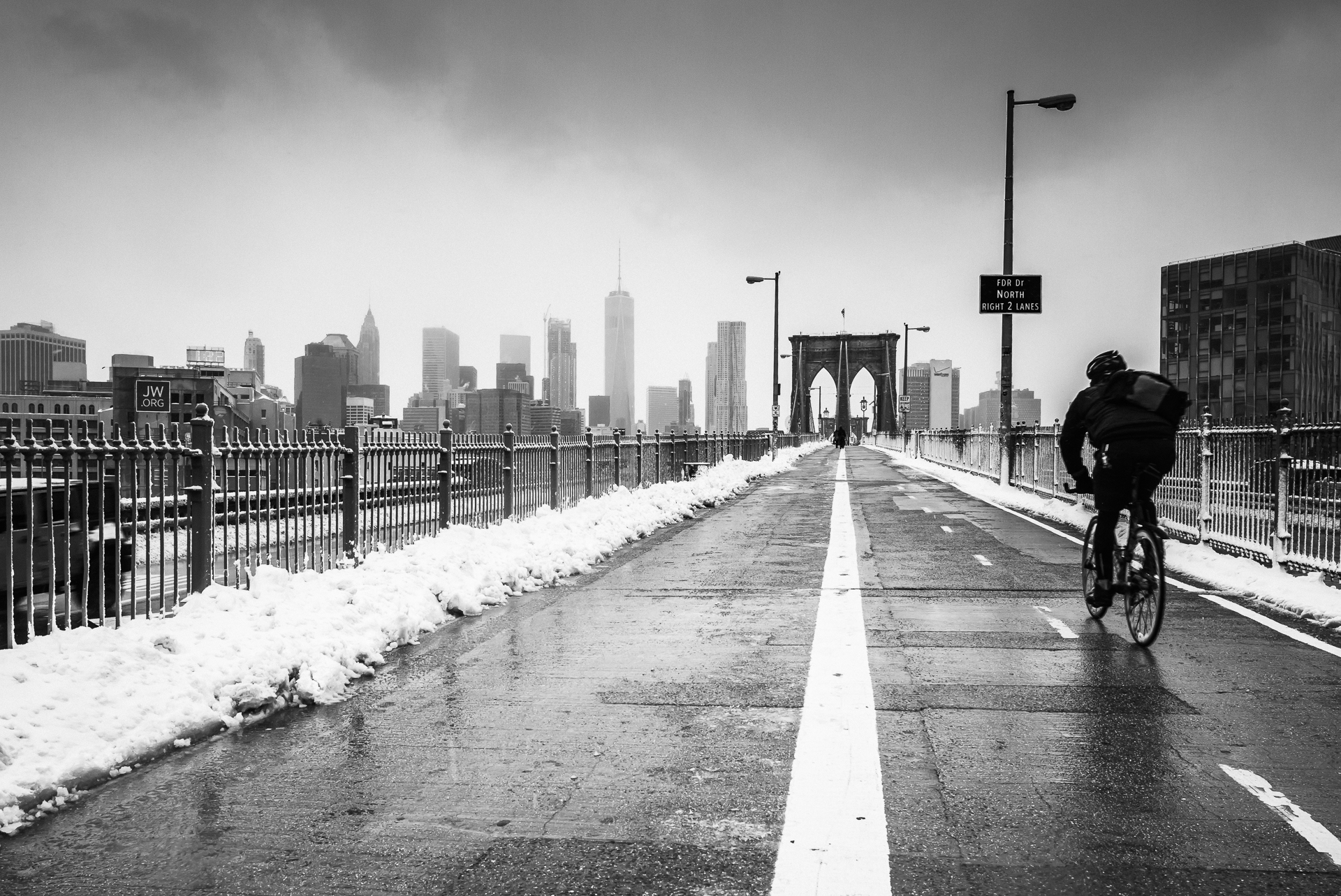 맨해튼을 향해 자전거를 달리는 이를 보았습니다