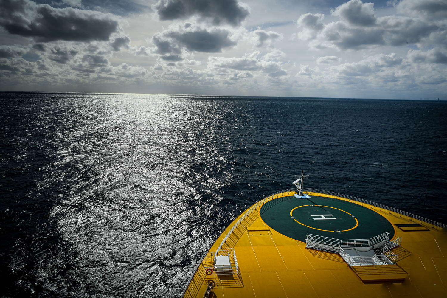 위에서 보니 핼리 착륙장이 있어 쿠르즈 선에서 처음 보는 광경입니다.