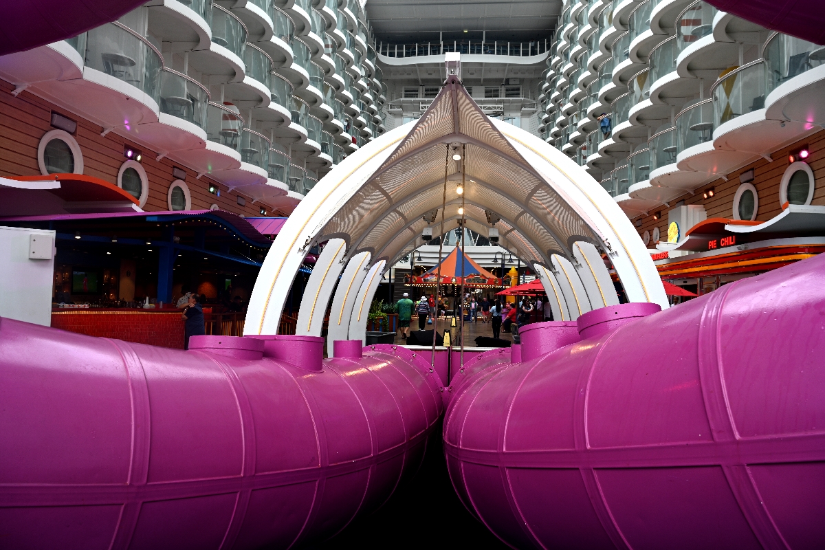 배의 높은곳으로 올라가 파이프를 타고 내려오는 놀이기구 입니다.