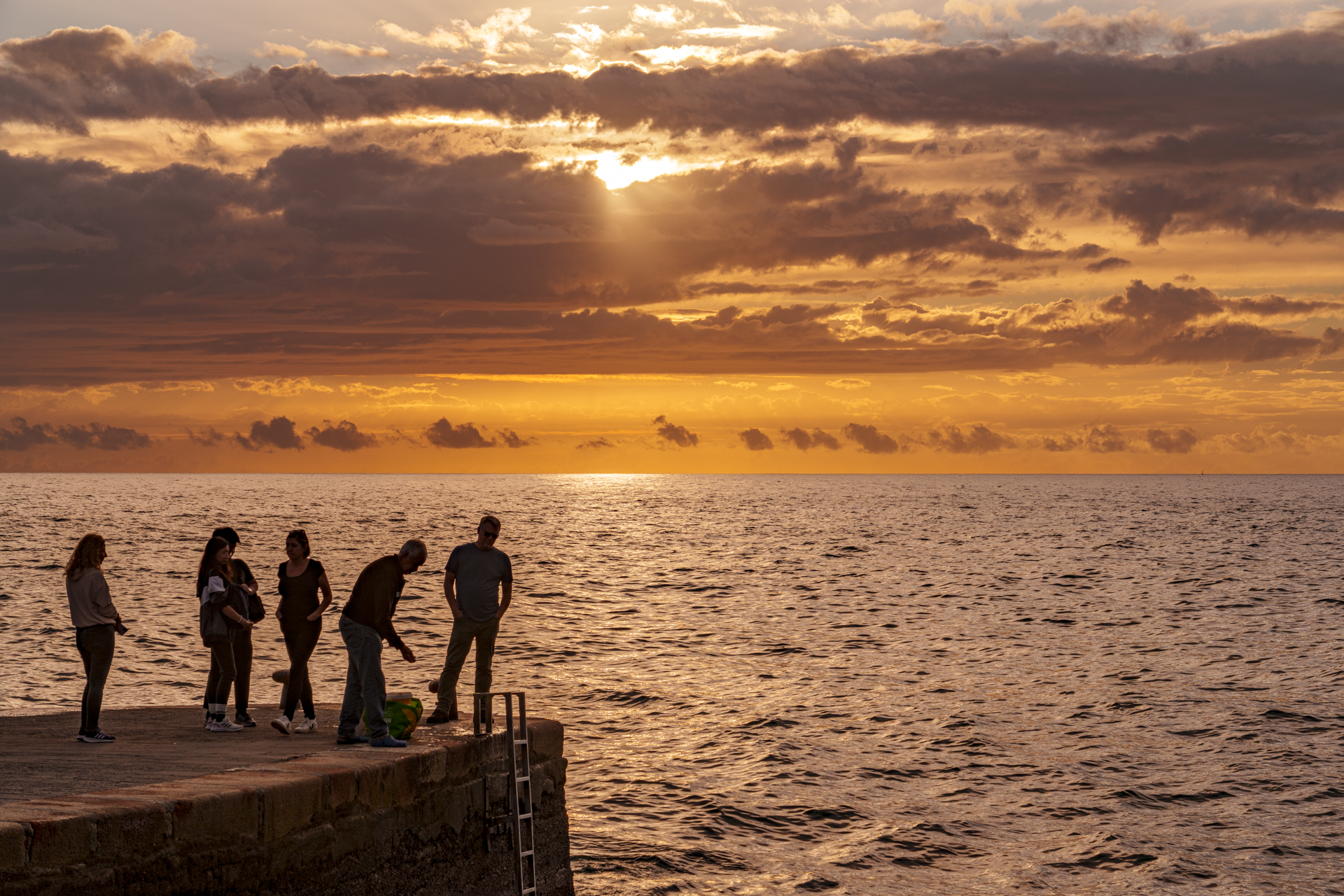 해질녁 방파제 위에 사람들이....