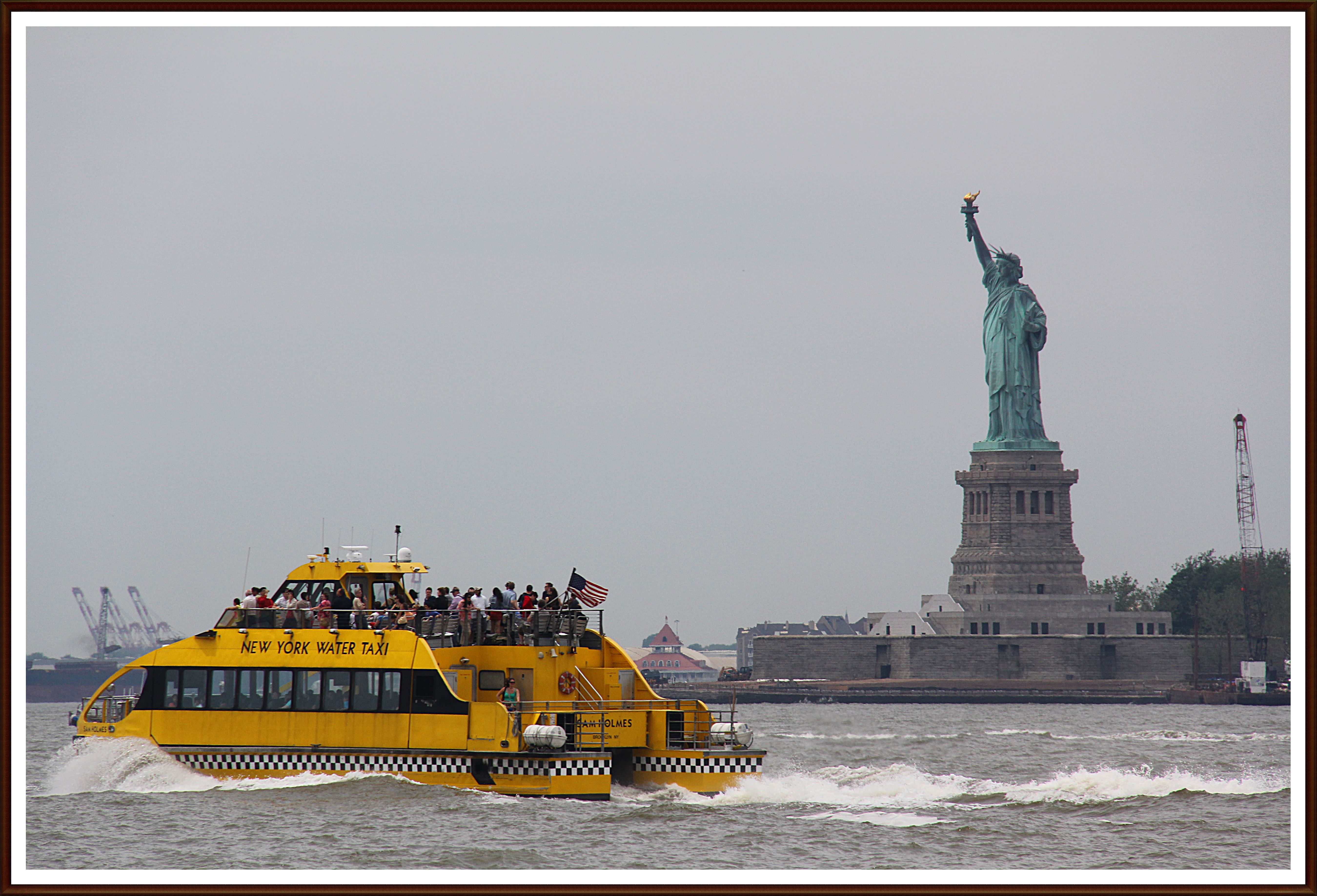 뉴욕의 상징인 자유여신상을 지나는 뉴욕수상 택시