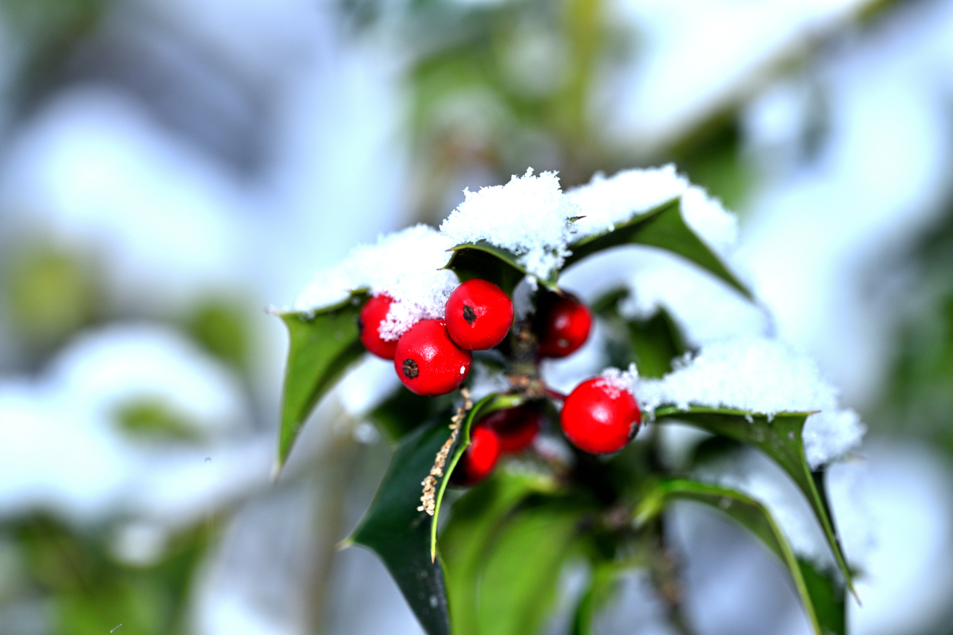 한겨울입니다만 눈덮인 빨간 열매가.