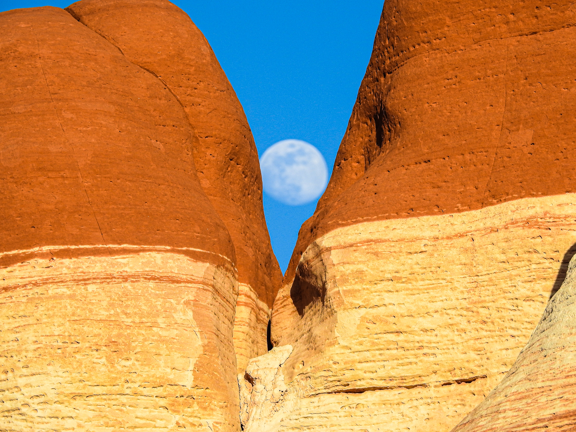 바위사이에 둥근달을 끼워서 담았어유