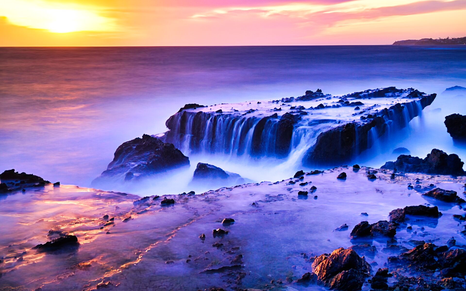 파도가 거친 일몰의 바다 풍경