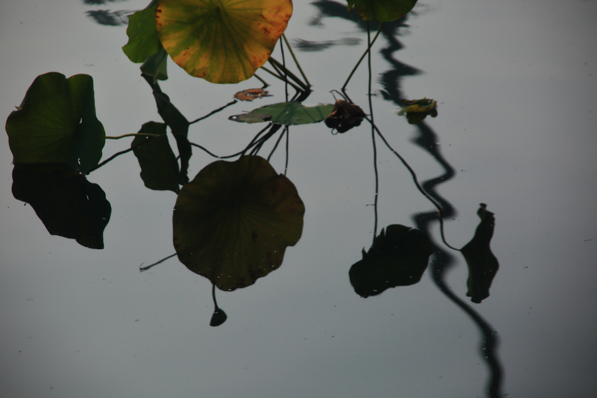 수면에 비친 연잎의 반영을