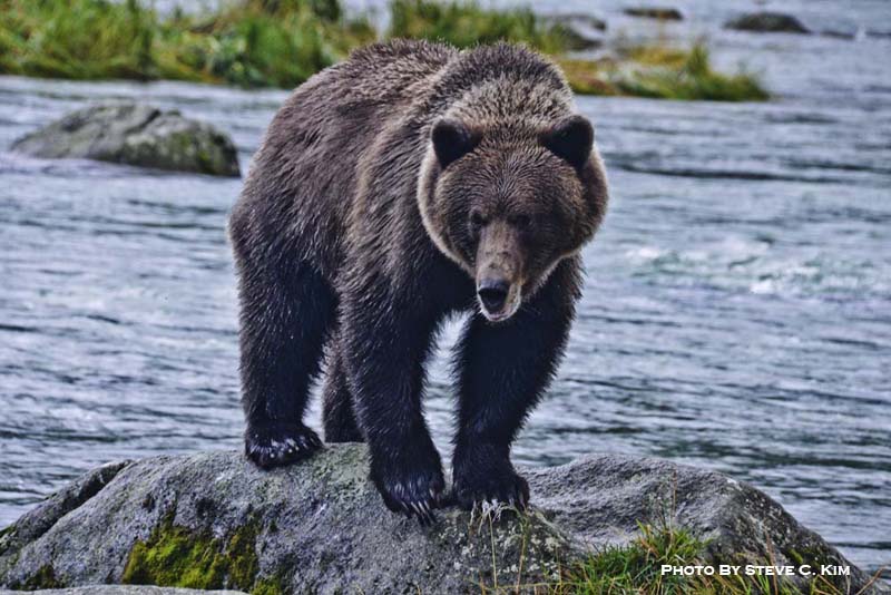 물가로 나와 공격 자세를 취하기 전의 곰 모습