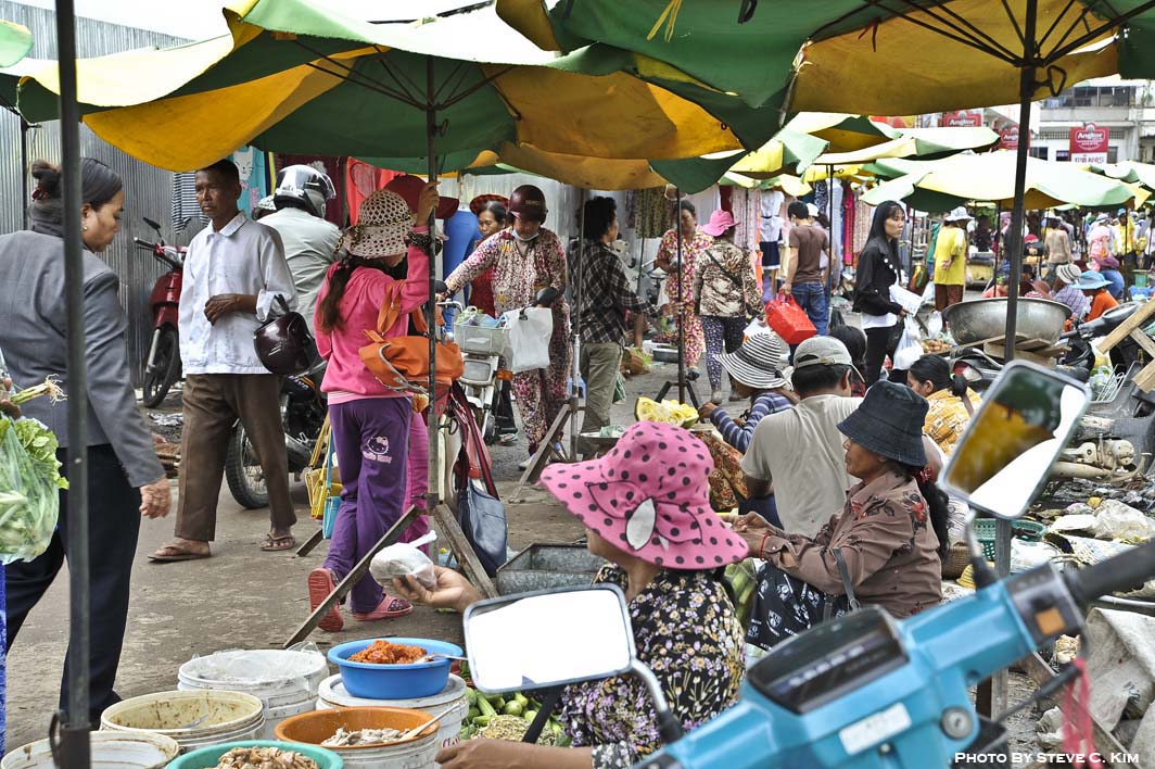 푸놈펜 도시 한 귀퉁이에 있는 시장의 모습은 1950년대 한국 전쟁후의 서울과 비슷 했읍니다.