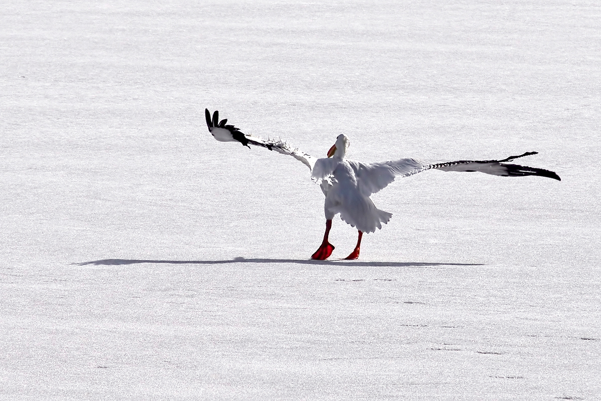 페리칸이 날개에 상처 때문에 날지못하고 있습니다