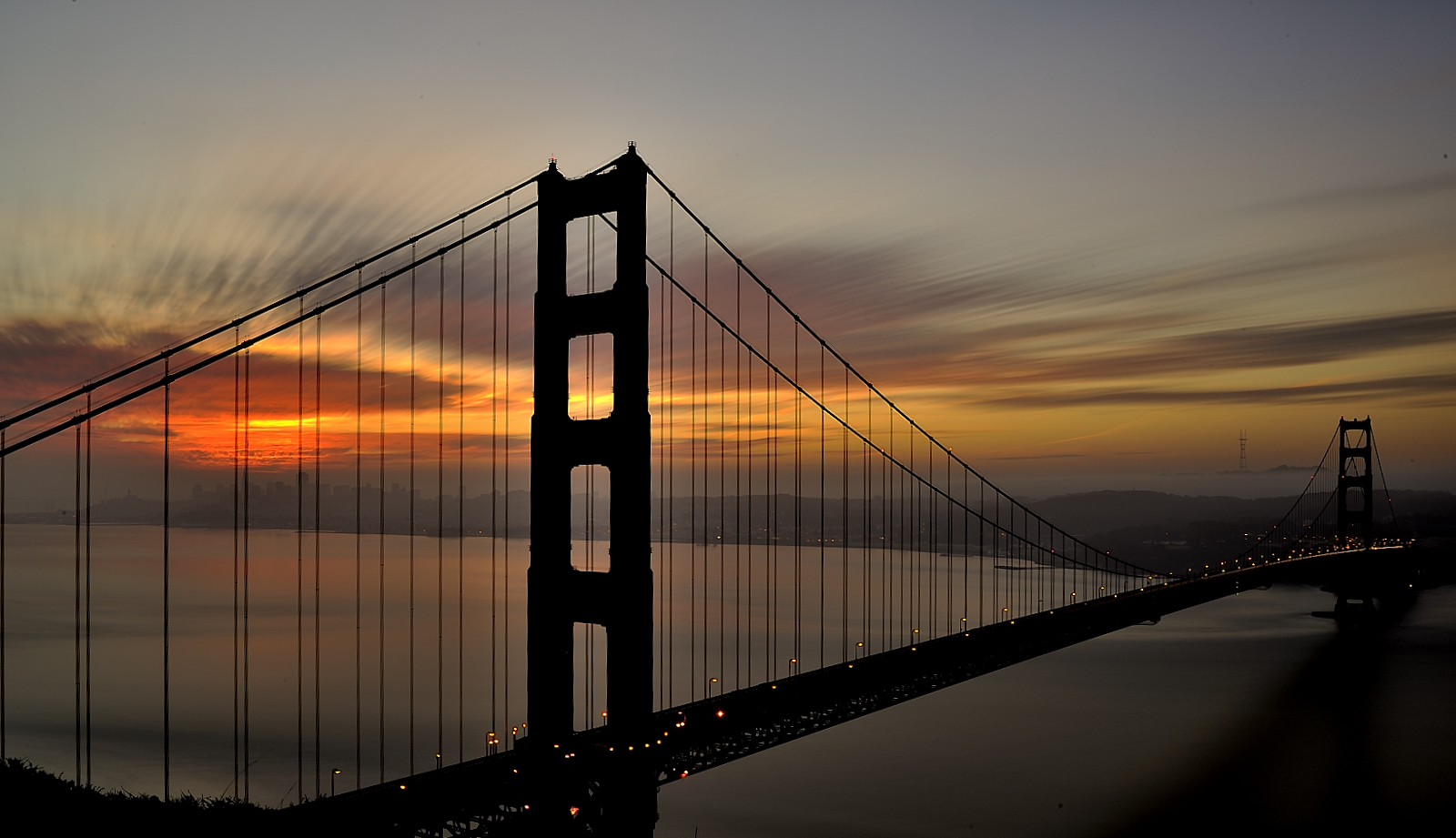 새벽녘에 금문교 사이로 비춰지는 여명입니다.