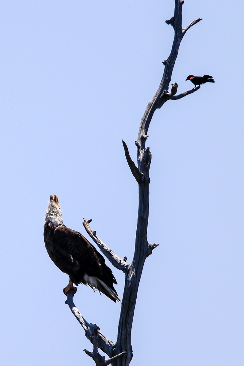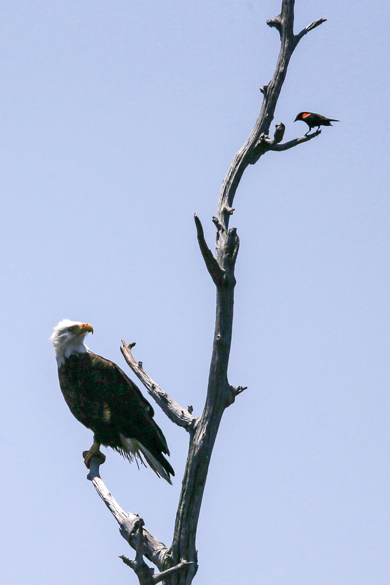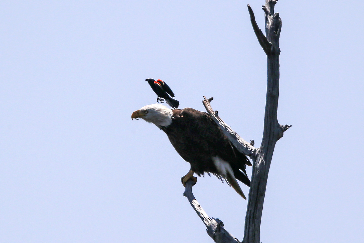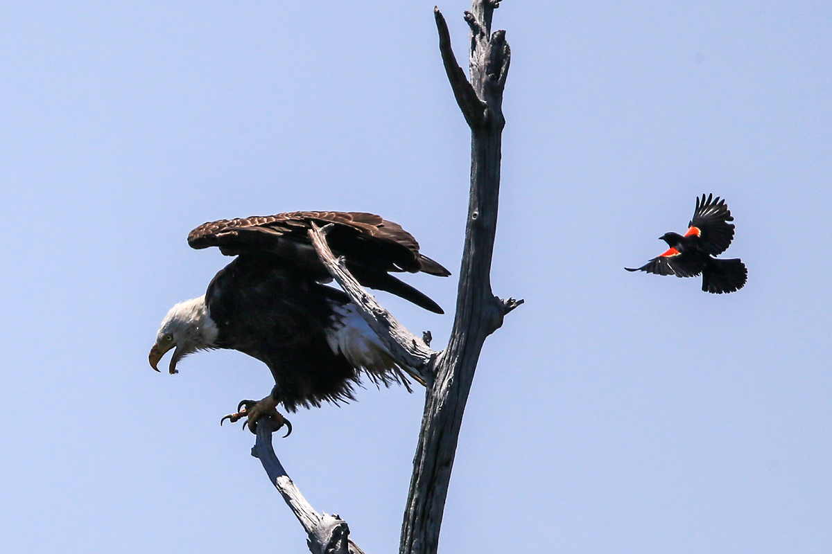 몸집으로 보나 뭘로 보나 상대가 되지 않는 Red Winged Blackbird가
