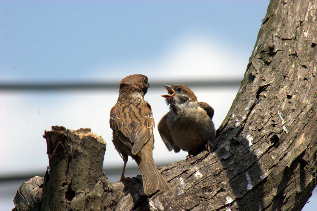 어린 새끼를 보살피는 참새의 모습 을 보며,,