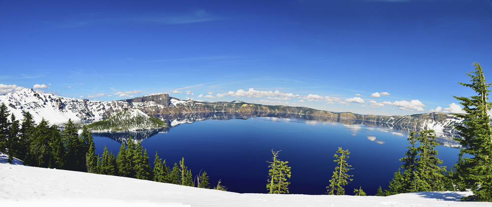 오레콘에있는 크레이터 레이크 겨울풍경임니다