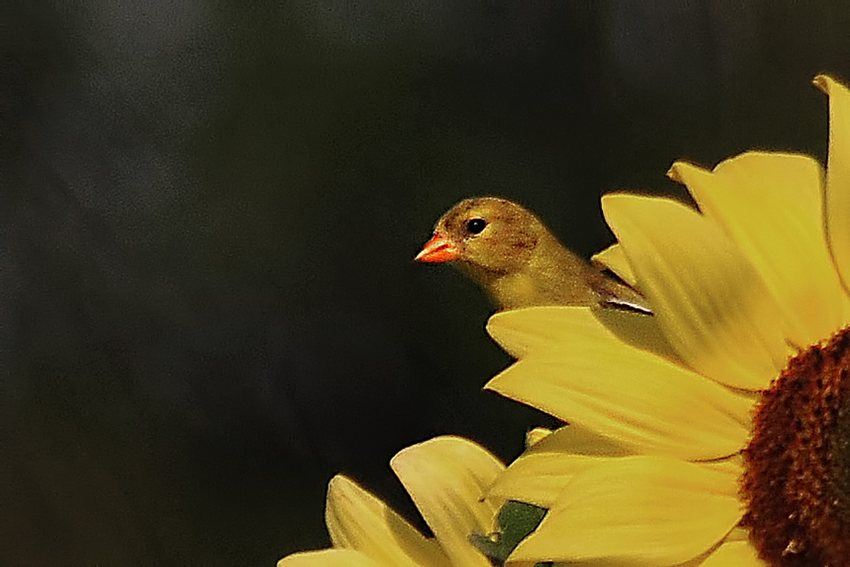 해바라기를 찍는데 새가 머리를 내미네요