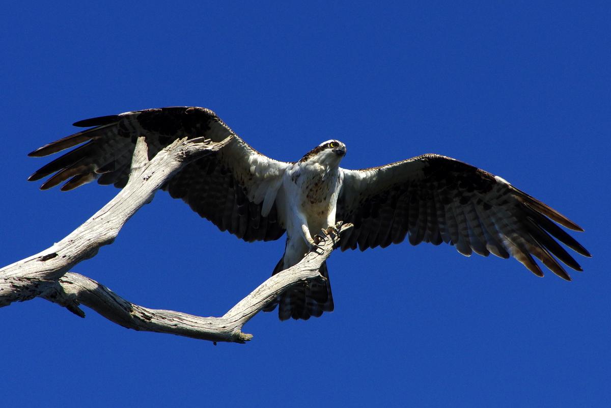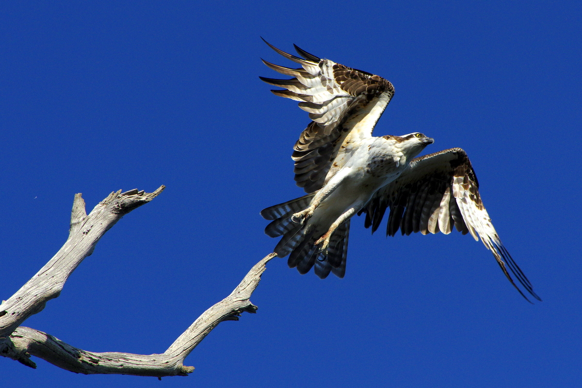 먹이를 발견하고 비상하는 물수리의 포즈