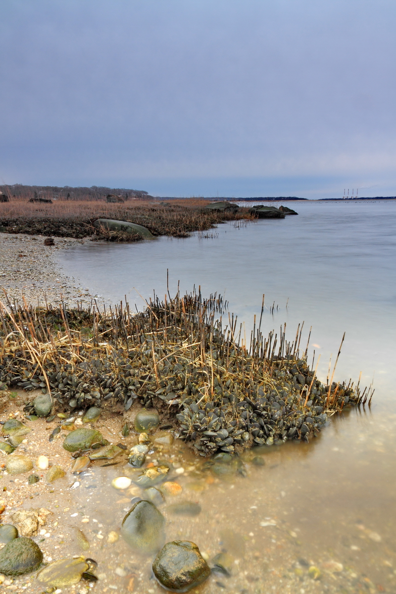 홍합과 바다갈대가 이추운 겨울에도