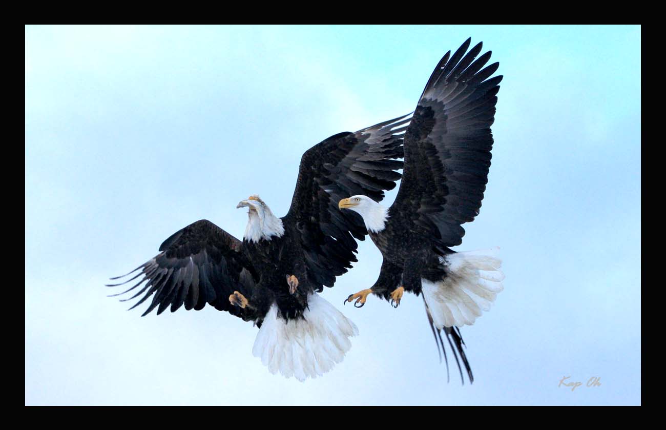 미국의 상징 흰머리 독수리들의 공중전 을 포착하였습니다.