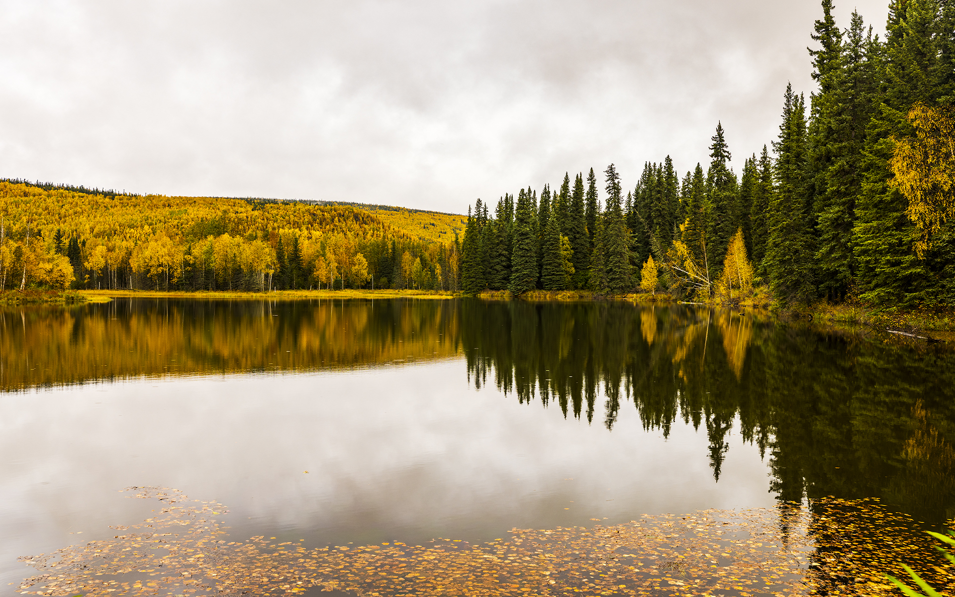 노란색으로 물들어가는 숲과 잔잔한