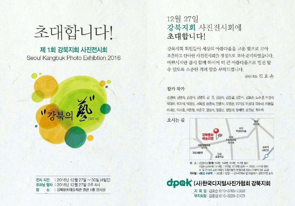 저희 강북지회에서 "강북의 藝 " 주제로 회원전을 개최합니다.