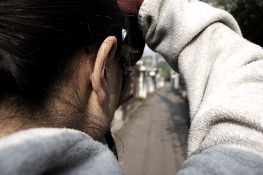 아내는 그 곳을 보며 셔터를 누르고