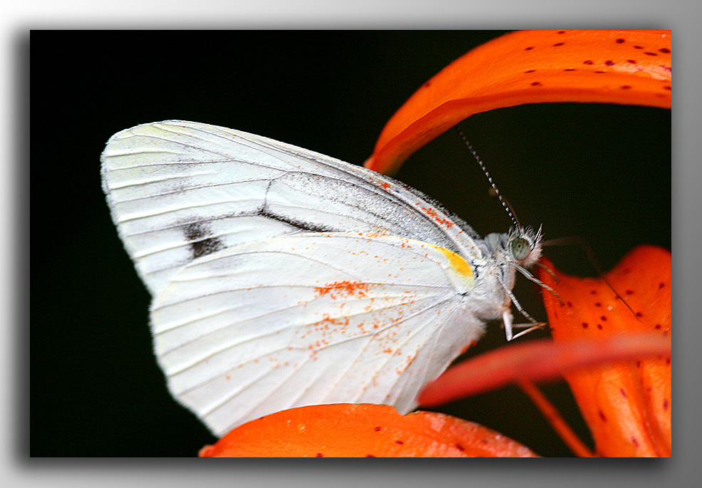 나리의 꽃가루를 몸에 묻히고
