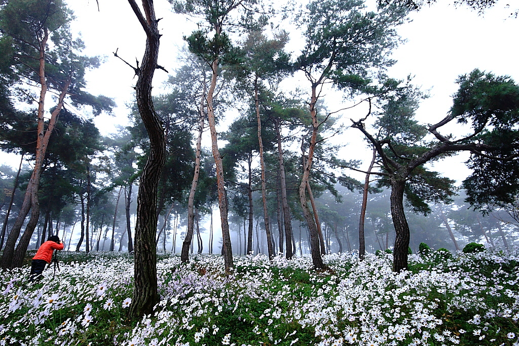 여진사님의 열정적인 모습과 새벽 아침 구절초 향기가 더해 주고 있습니다.