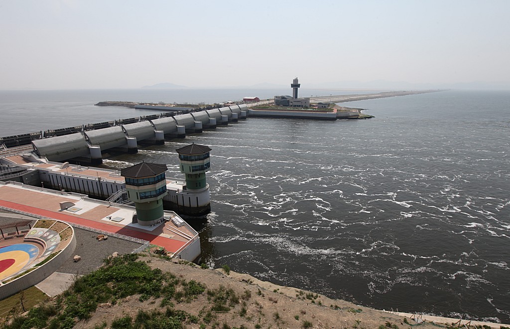 새만금 신시도리 휴게소에서 바다와 통수중인 장면