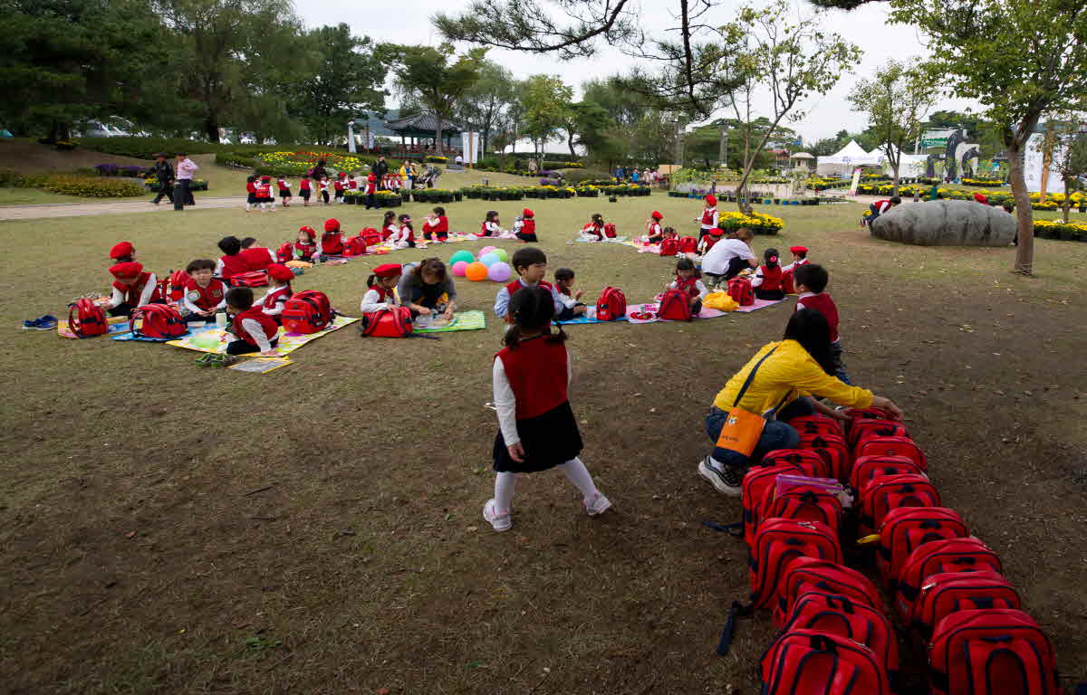 천안 흥타령 축제장에 나들이 나온 유치원생들
