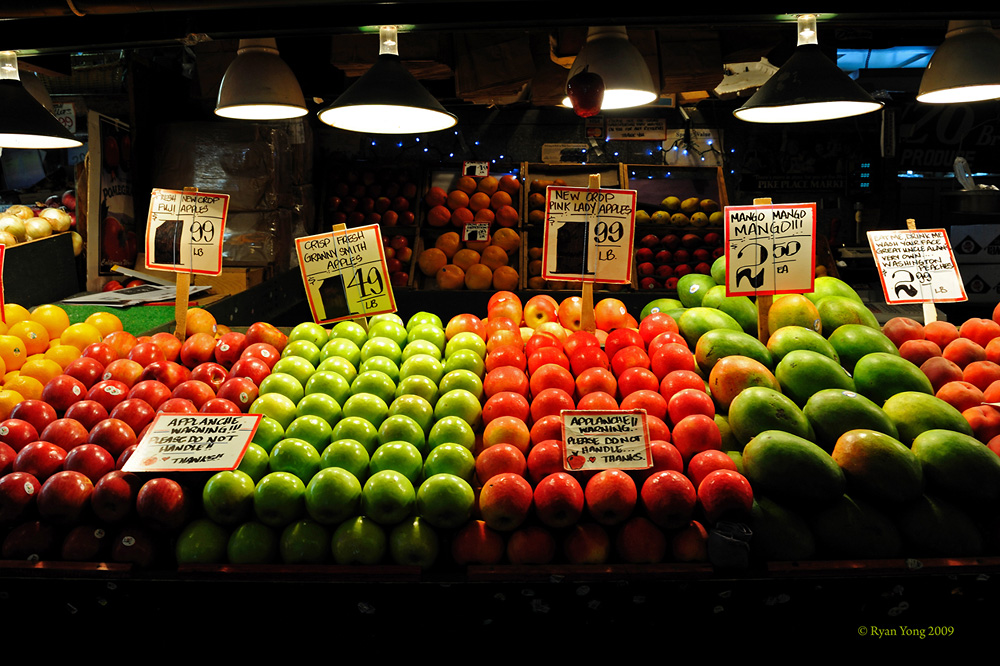 미국 워싱톤주 씨애틀 타운에 있는 Public Market 안에 있는 과일가게 입니다.