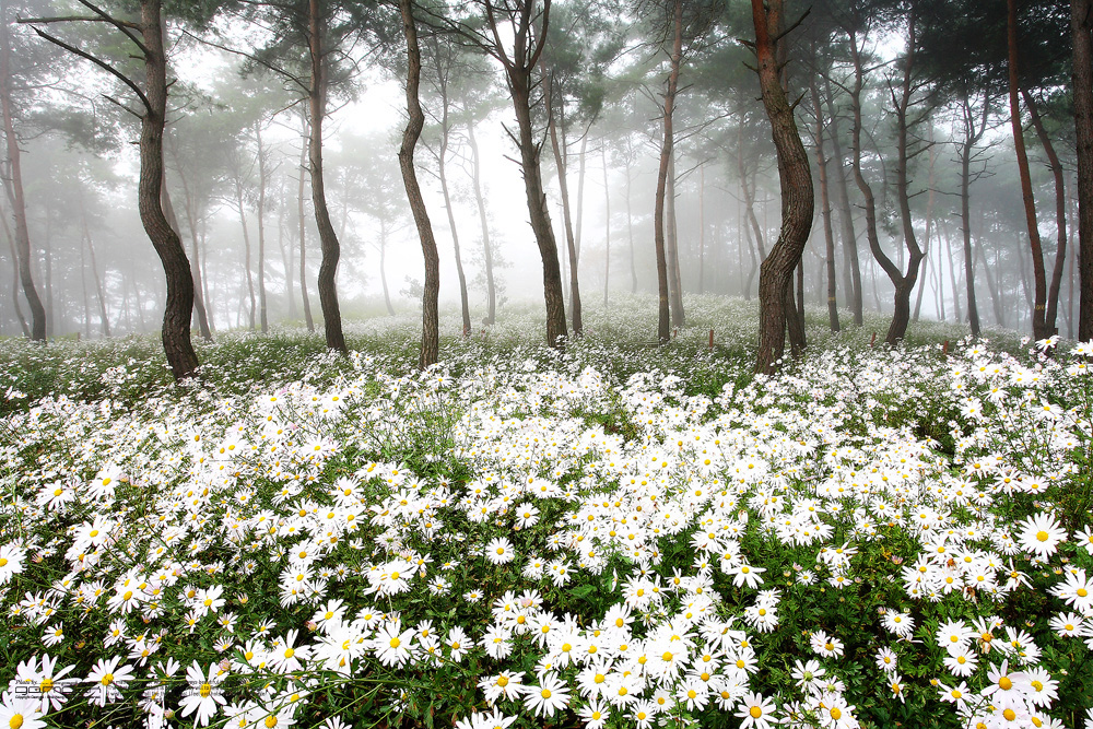 아침 안개가 자욱했던 구절초공원에서의 한 컷입니다.