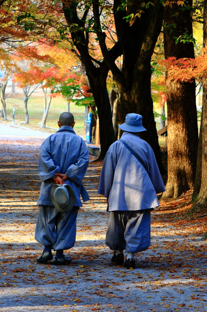 두 스님의 한가한 가을 나들이가 여유를 갖게합니다.