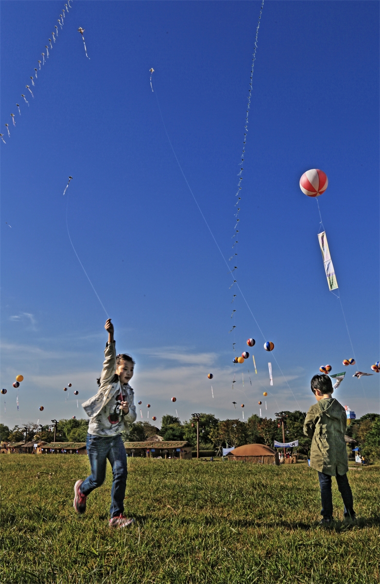더 높이~ 지평선 축제에서 한 어린이가 바람이 부족하지 떠 오르지 않자 연줄을 잡고 뛰기 시작한다 어린이의 꿈처럼 높이 날아 오르기를 ....