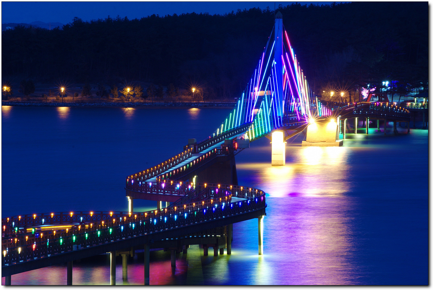 은파호수 공원의 보도현수교 물빛다리 야경입니다.