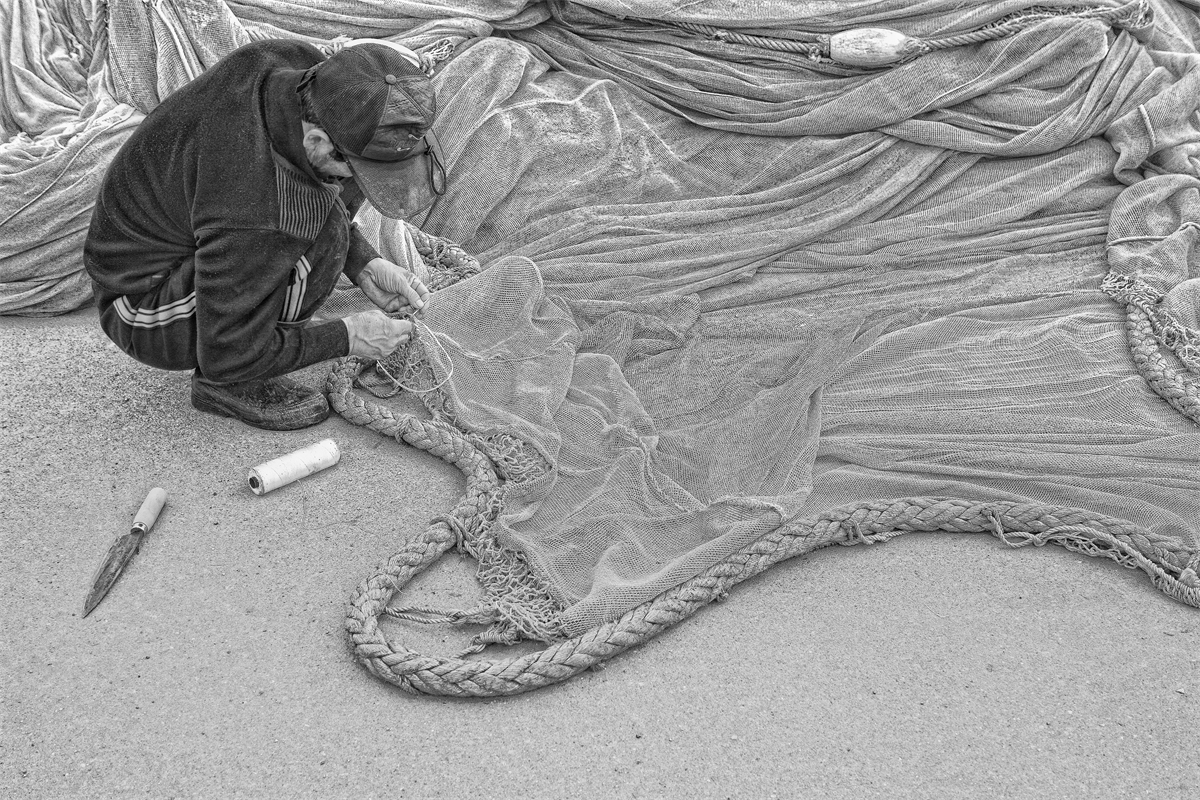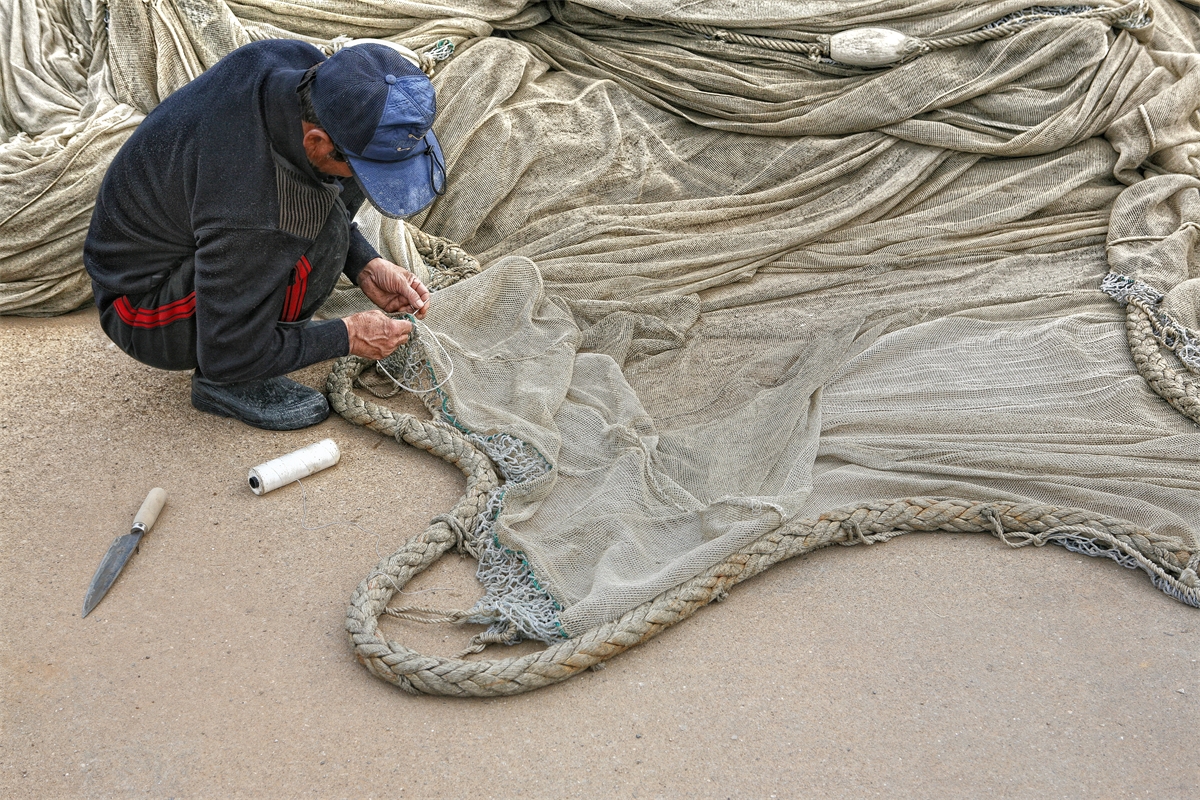 만선을 기대하며 그믈 손질하는 손길 이제 출어를 기대합니다