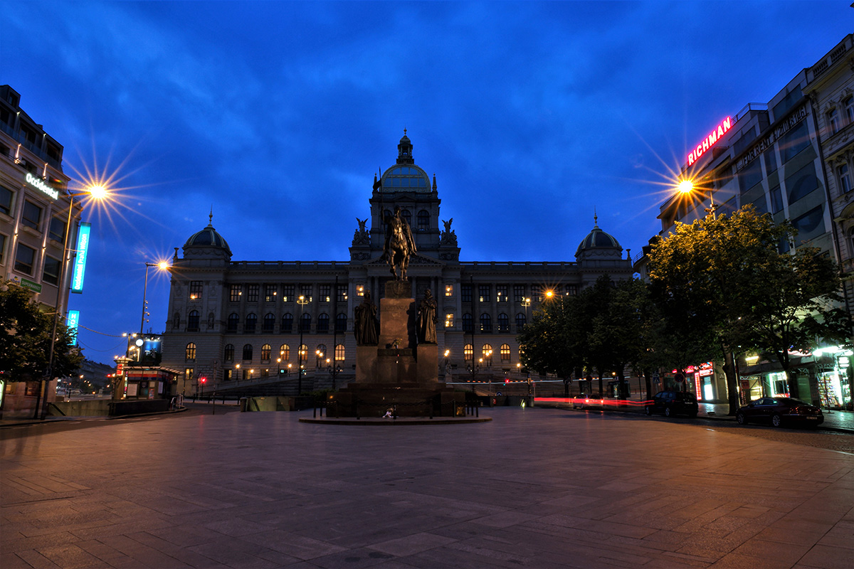 이른 새벽 프라하 국립박물관 광장에 나홀로 서다
