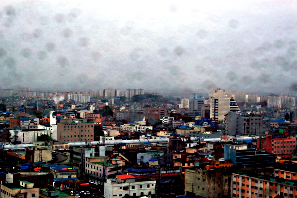 비오는 날 창문에 빗방울이 맺히고