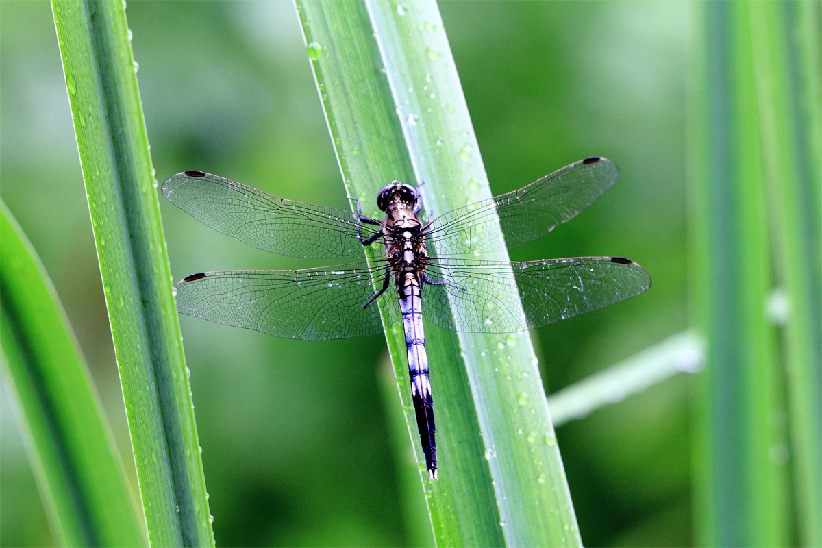 비를 피해 쉬고 있는 잠자리, 덕분에 날개 구조를 자세히 살펴볼 수 있었습니다.