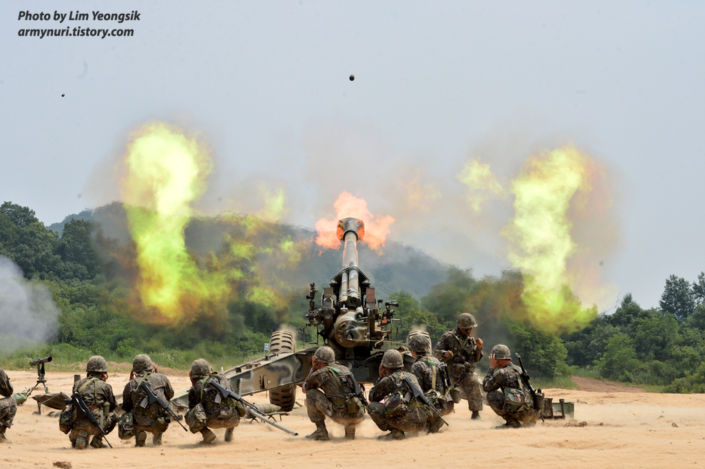 155미리 견인포발사!