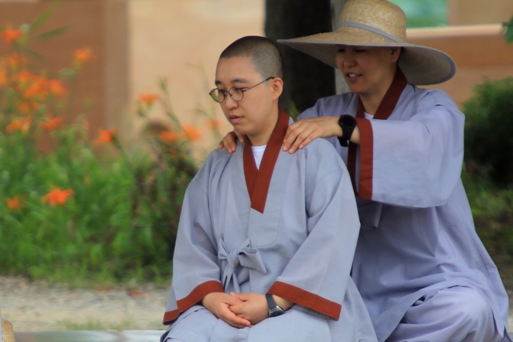궁남지에서 교대로 안마을하시는스님.