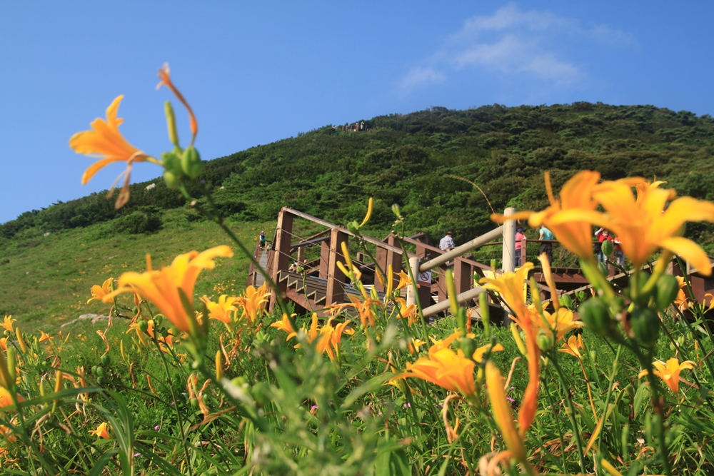 홍도원추리(백합과) 가 올래길에도 활짝 피어 나를 반긴다.