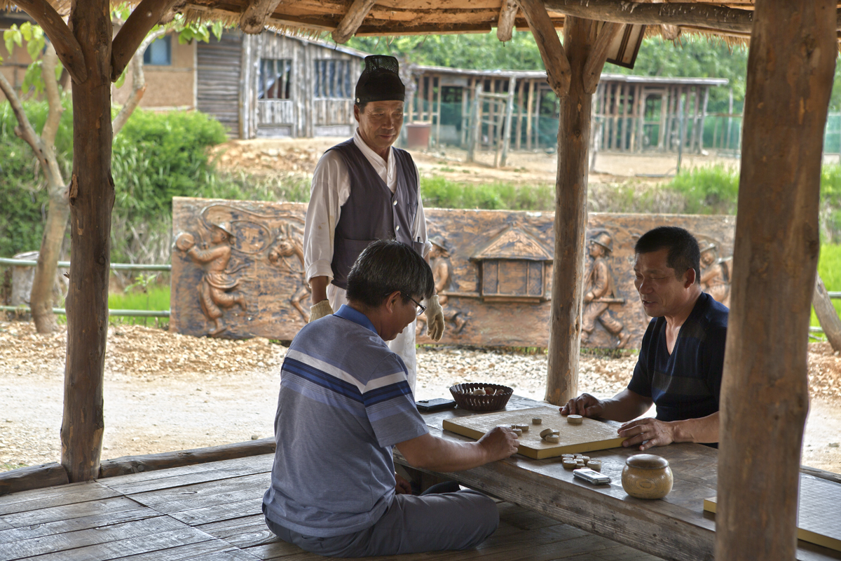 시원한 평상아래 장기두는 래방객