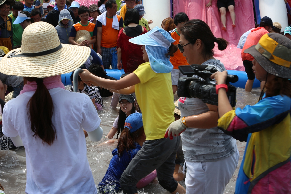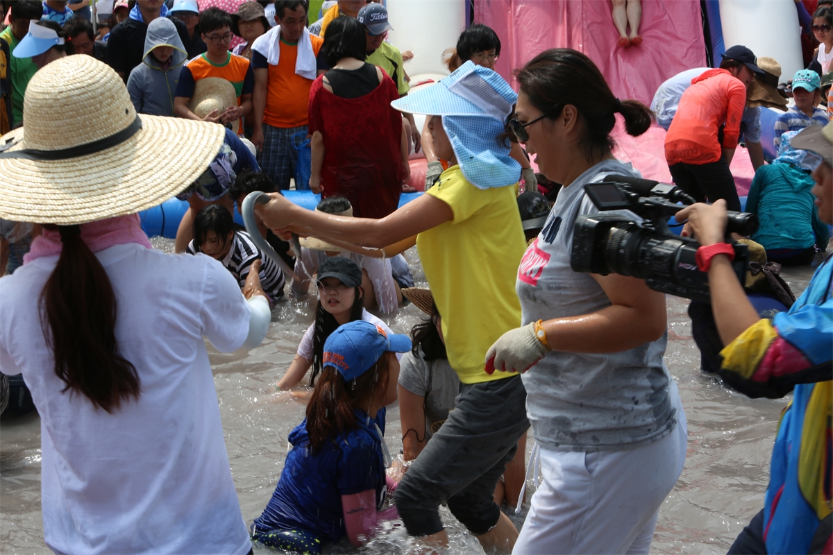 고창 갯벌체험 축제 중에 맨손 장어잡이 축제에서
