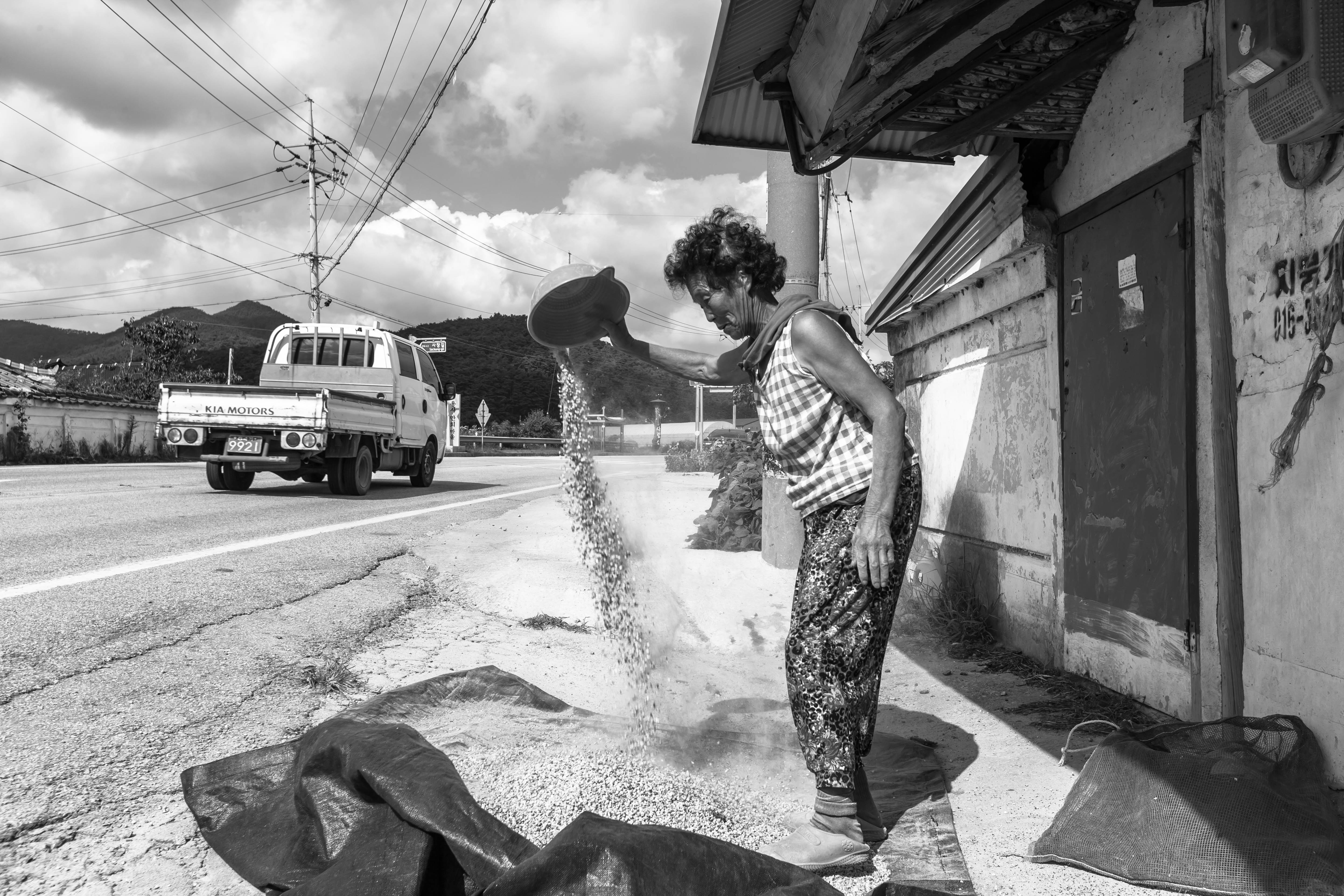옥수수찌꺼기 먼지를 바람에 날리시고 계시더군요....