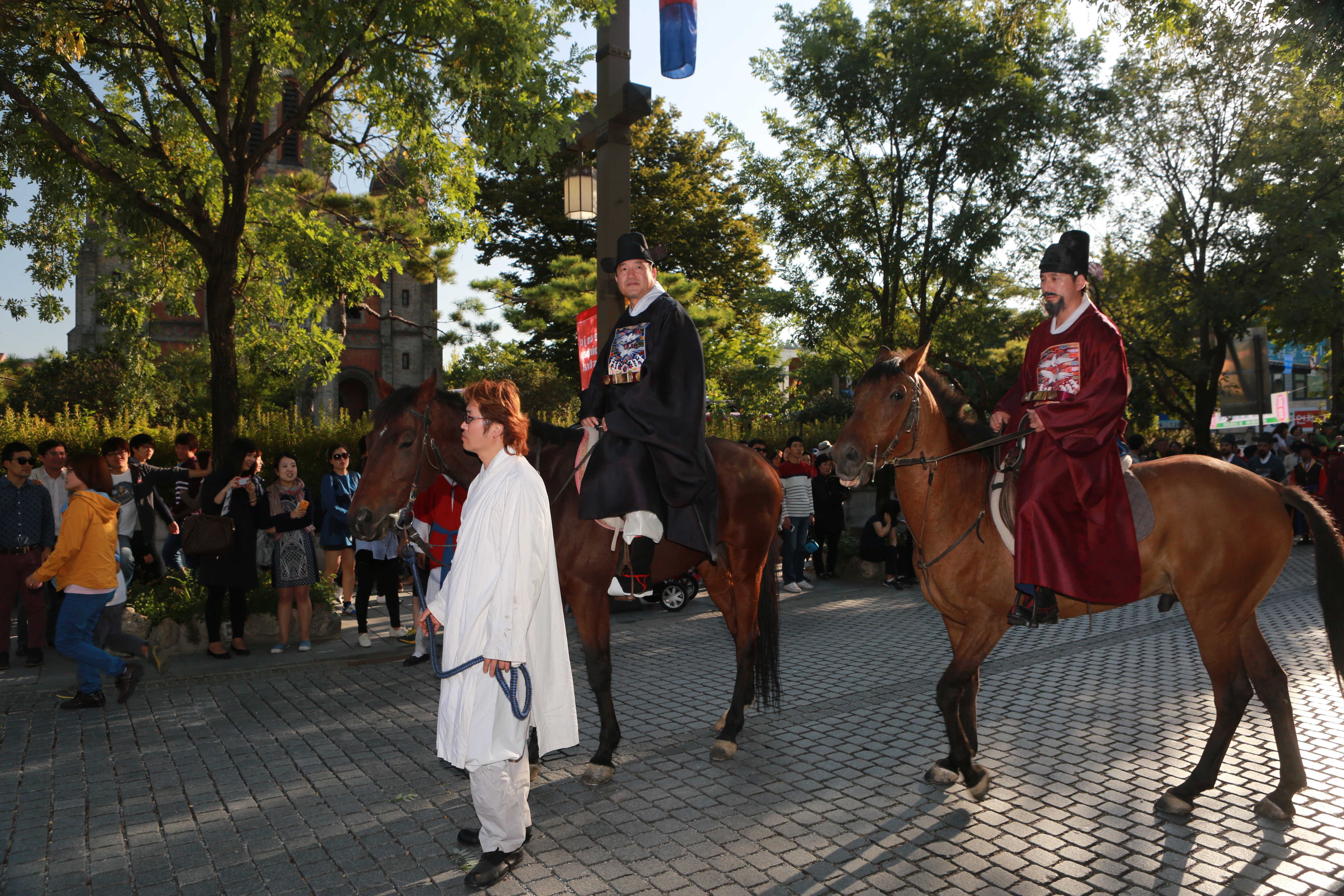 송하진 전주시장이 말을 타고 어진 봉안 행렬을 이끌고 있다