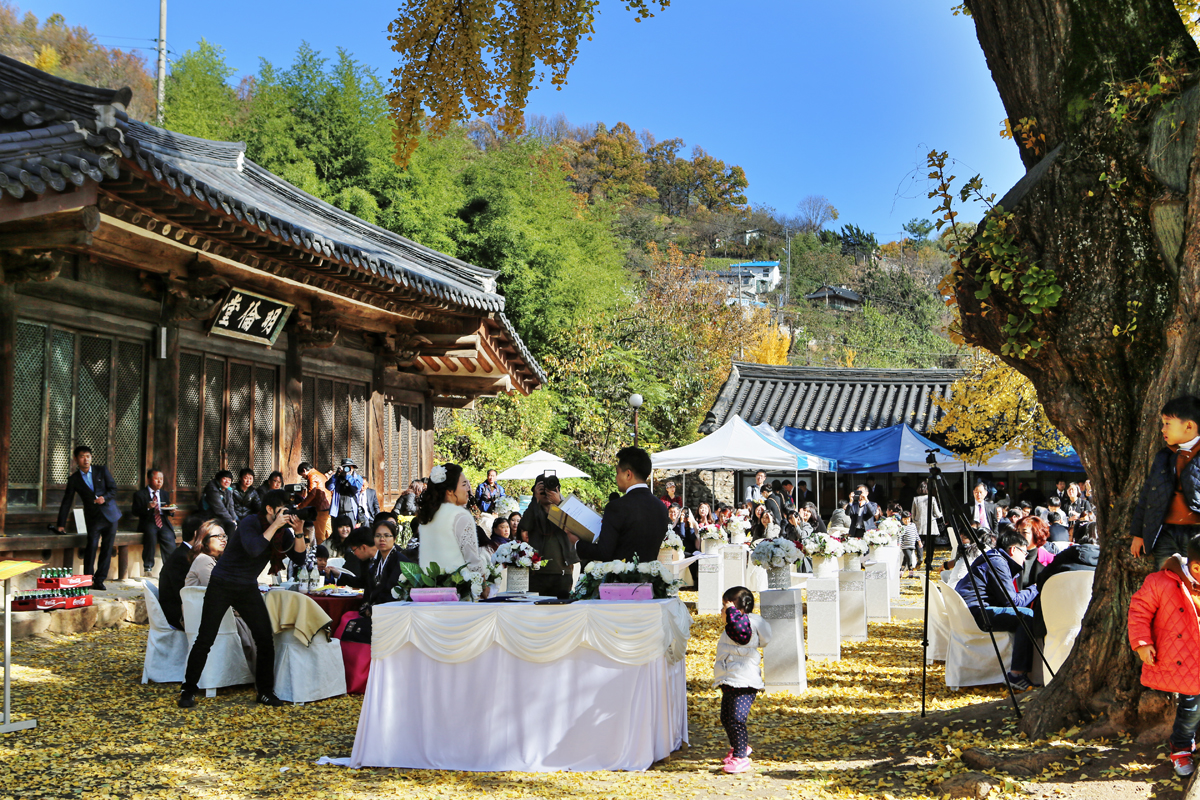 신부의 하얀 웨딩드레스를 대신한 깔끔한 생활복으로