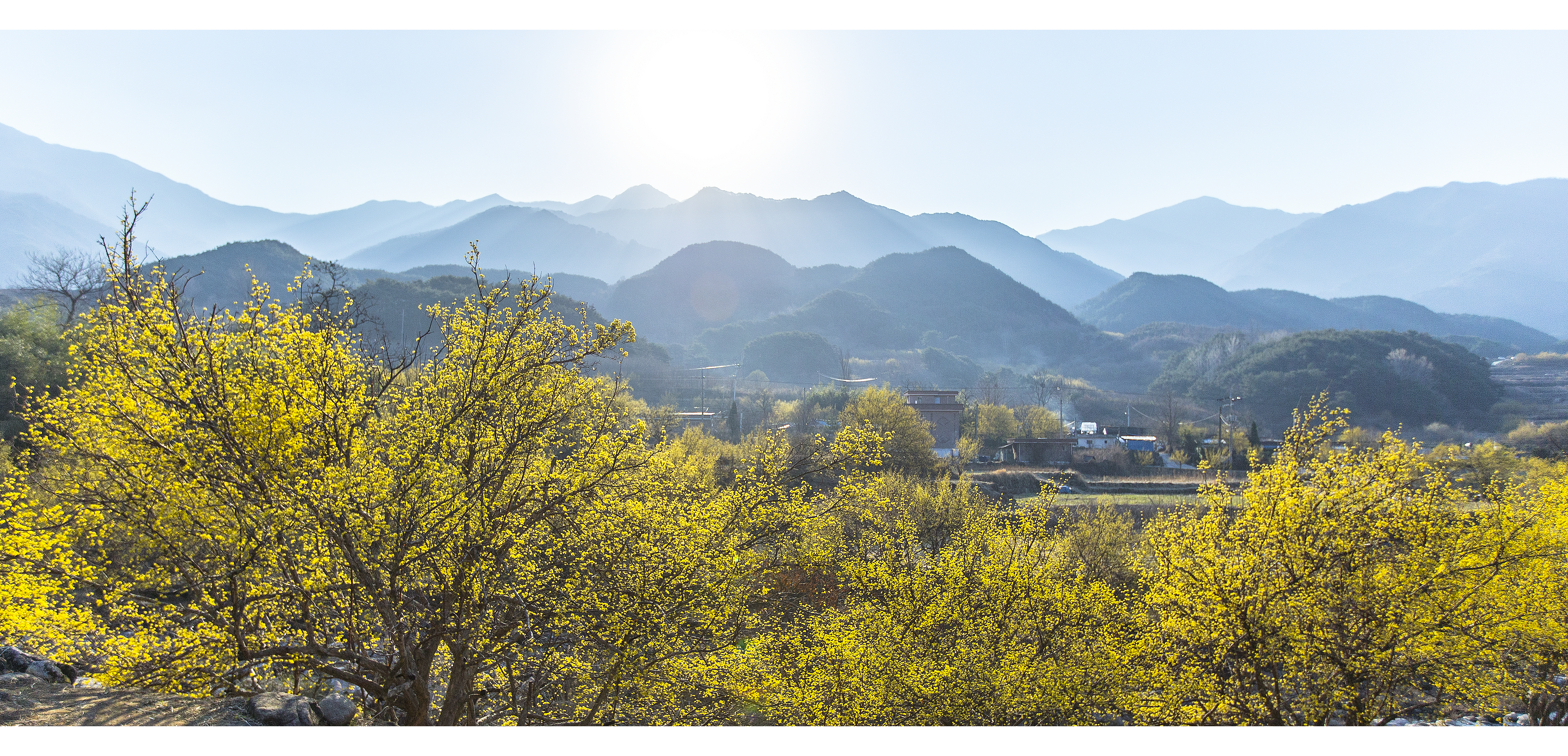 아름다운 산수유와 산그리메