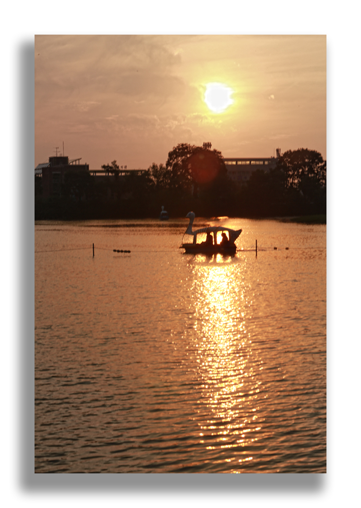 다정한 연인이 한가로이 뱃놀이를 즐기고 있다