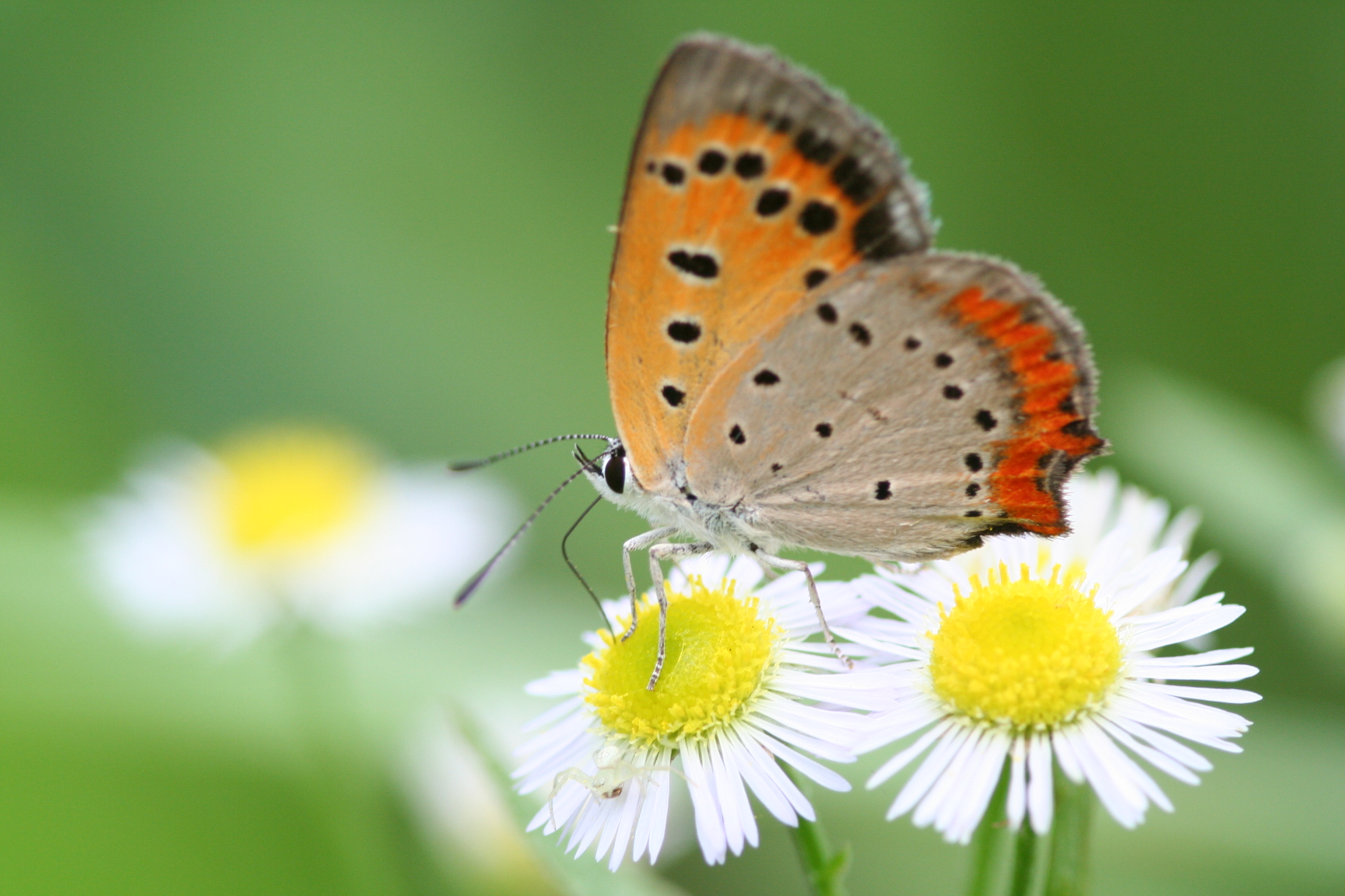 개망초에 앉아 식사중인 주홍부전나비