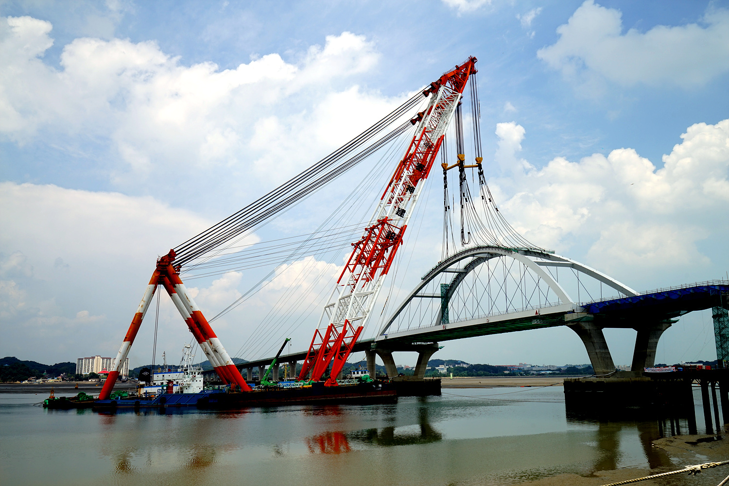 군산에서 군장대교의 상징인 초대형 닐센아치교(주경간교)가